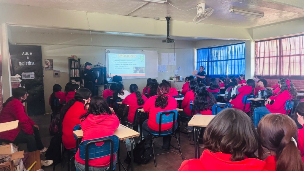 El peligro en las redes sociales para los adolescentes fue el tema de una plática de Agentes de la Dirección de Seguridad Ciudadana y Tránsito Municipal de Tecate, en la Secundaria Sor Juana Inés de la Cruz, con la participación de 180 alumnos.