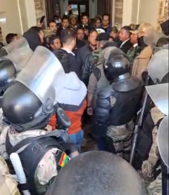 📍Militares dan golpe de estado en Bolivia al régimen del presidente Luis Arce, y entran a la fuerza al palacio presidencial, reventando con una tanqueta la entrada del mismo.