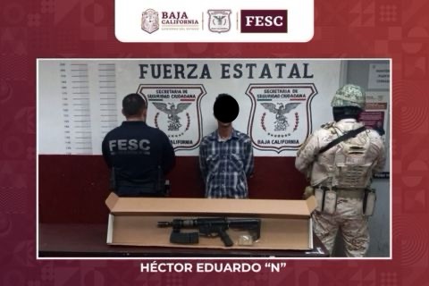 En un despliegue operativo para inhibir los actos delictivos, agentes de la Fuerza Estatal de Seguridad Ciudadana (FESC) adscritos a la Secretaría de Seguridad Ciudadana de Baja California (SSCBC) y elementos de la Secretaría de la Defensa Nacional (SEDENA) capturaron en el municipio de Tecate a un presunto delincuente ligado a un grupo generador de violencia; al momento de la detención, este hombre a quien apodan como ‘El Gusano’ se hallaba en poder de un arma de fuego de alto calibre abastecida en la zona del cargador con varios cartuchos útiles.