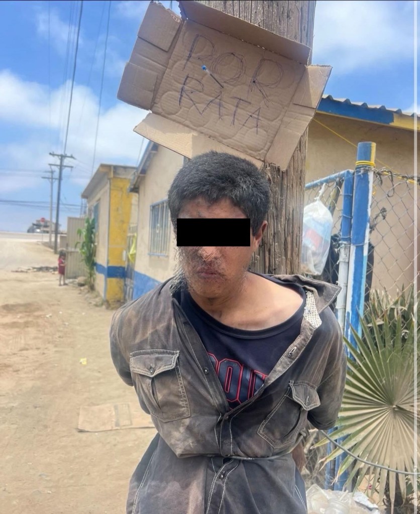 📌HICIERON JUSTICIA POR PROPIA MANO Y LO DEJARON ATADO A UN POSTE Y LE COLOCARON UN LETRERO “POR RATA”.