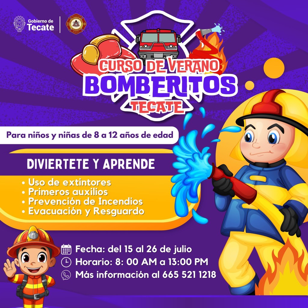 La coordinación municipal de Protección Civil y Bomberos invita al curso de verano impartido a niños y niñas de edad 8 años a 12 años a participar en su programa anual curso de verano, donde aprenderán los temas de prevención de incendios en el hogar, uso de extintores 🧯, primeros auxilios, RCP solo con las manos, evaluación y resguardo así como visitas guiadas a nuestras estaciones de bomberos .