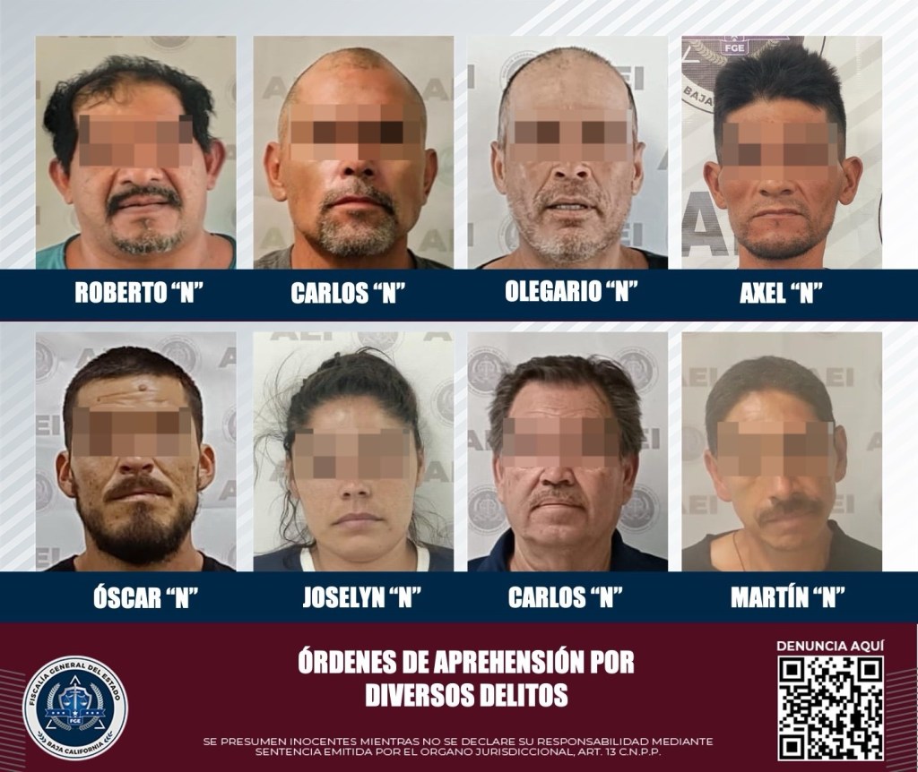 Como resultado de diversas acciones de investigación implementadas para ubicar a quienes intentan evadir la justicia y llevarlos ante las autoridades correspondientes, elementos de la Agencia Estatal de Investigación de la Fiscalía General del Estado en Tecate cumplimentaron 9 órdenes de aprehensión por diversos delitos.