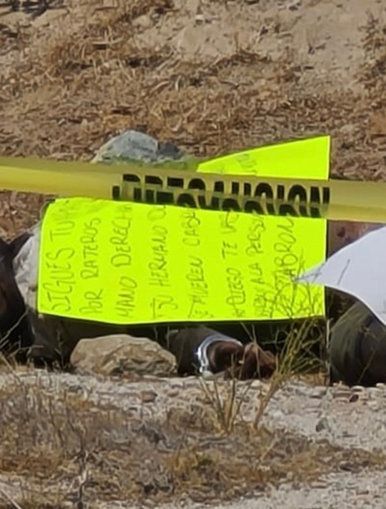 📌DE ACUERDO A LA AUTORIDAD A AMBOS CUERPOS LES DEJARON UNA CARTULINA CON UN NARCOMENSAJE.