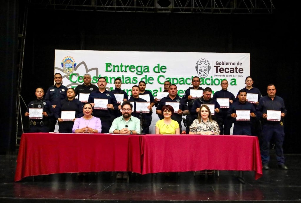 Alrededor de 30 elementos de la Dirección de Seguridad Ciudadana y Tránsito Municipal de Tecate, recibieron la tarde de este jueves sus respectivas Constancias de Capacitación Policial de manos del presidente municipal de Tecate Darío Benítez, en una ceremonia de entrega realizada en las instalaciones del Teatro de la Ciudad.