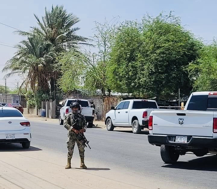 📍Enfrentamiento entre civiles fuertemente armados y elementos de la Secretaría de Marina en callejón Zacatecas, entre calles 15 y 16, en San Luis, la tarde de este martes.