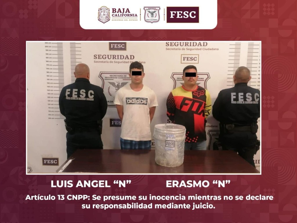 📌LOS DETENIDOS SON LUIS ÁNGEL DE 26 AÑOS Y ERASMO DE 31 AÑOS, ORIGINARIOS DE TECATE Y DE TIJUANA, RESPECTIVAMENTE.