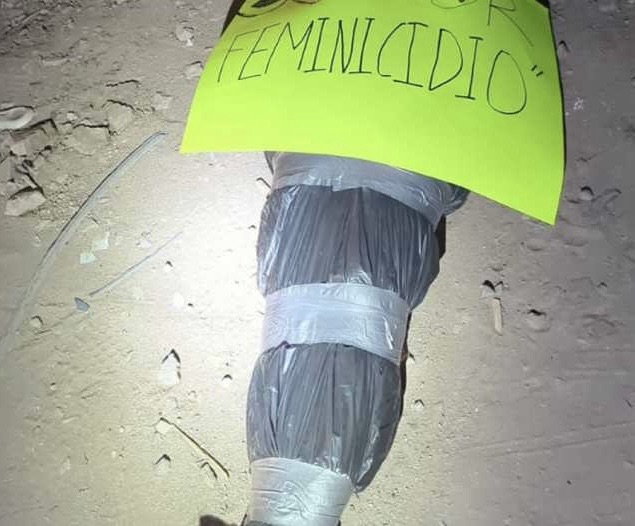 El hombre encontrado muerto ayer en el bulevar Lázaro Cárdenas y Avenida las Minitas, en el fraccionamiento Villas del colorado, a quien dejaron envuelto en plástico y cintas adhesivas, atado de las manos y con una cartulina verde con la leyenda «por feminicidio», aún no ha sido identificado.