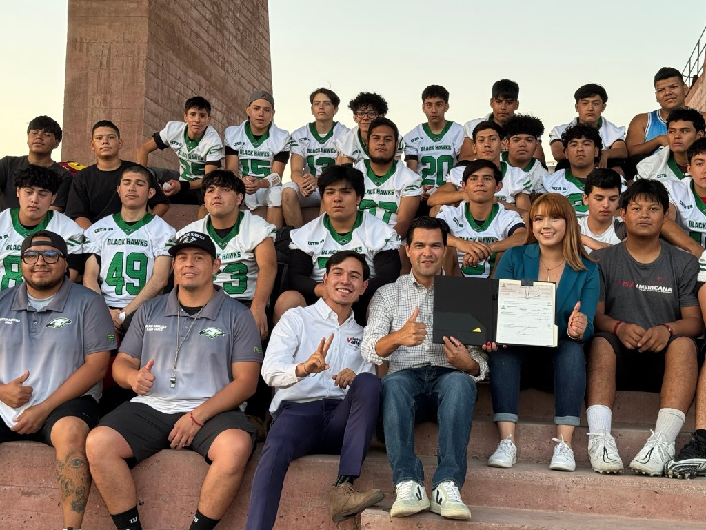 La cancha de footbol americano El Mayab, fue el escenario preciso para que el diputado Beto Valle hiciera entrega de un importante apoyo económico al equipo de jóvenes Black Hawks que practican este deporte.