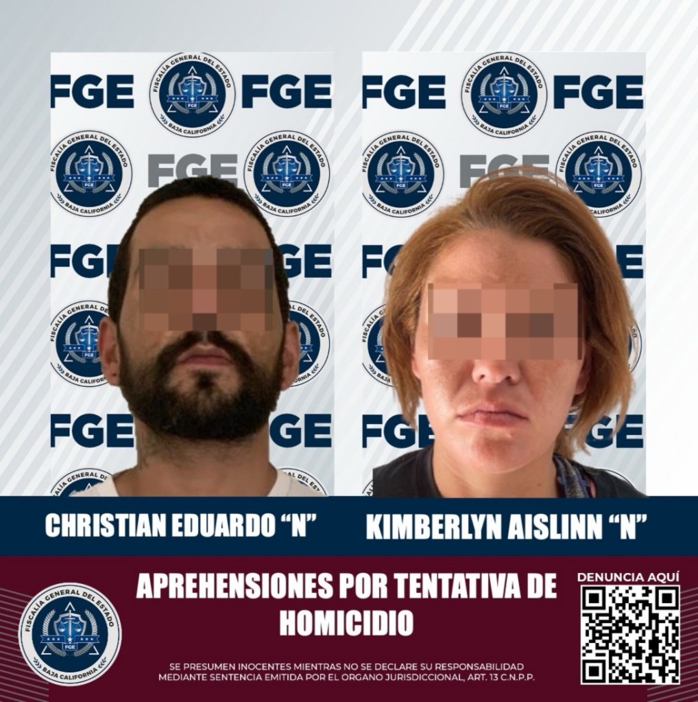 La Fiscalía General del Estado, a través de la Agencia Estatal de Investigación (AEI) de la Zona Tecate, cumplimentó una orden de aprehensión en contra de Christian Eduardo “N” y Kimberlyn Aislinn “N”, por el delito de homicidio calificado en grado de tentativa.