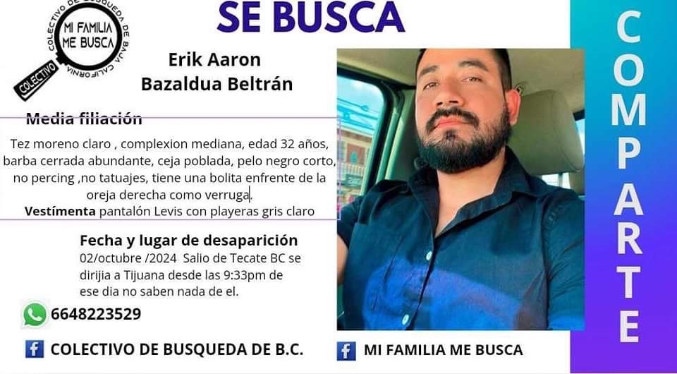 📍ESTABA EN TECATE E IBA A #TIJUANA, DESDE EL 02 DE OCTUBRE SU FAMILIA NO SABE DE SU PARADERO, PERDIERON COMUNICACIÓN CON ÉL CERCA DE LAS 9:40 DE LA NOCHE.