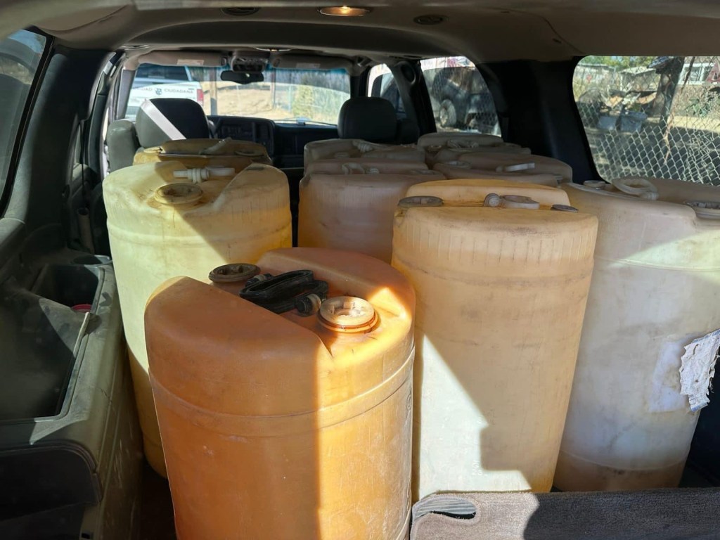 Fue en las inmediaciones del poblado de El Hongo, en donde los agentes de la FESC recorrían la zona de terracería localizando un vehículo Chevrolet Suburban de color blanco modelo 2002 el cual estaba en situación de abandono, por lo que se aproximaron a revisar encontrándose al interior un total de 8 contenedores de plástico llenos en su totalidad de gasolina, así como uno más que se encontraba a la mitad de su capacidad.