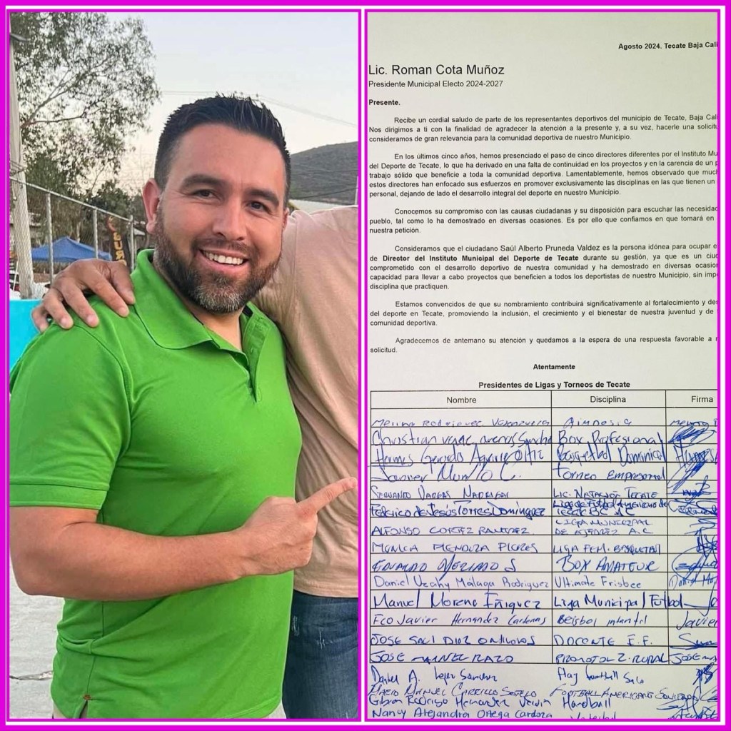 Estamos convencidos de que su nombramiento contribuirá significativamente al fortalecimiento y desarrollo del deporte en Tecate, promoviendo la inclusión, el crecimiento y el bienestar de nuestra juventud y de toda la comunidad deportiva.