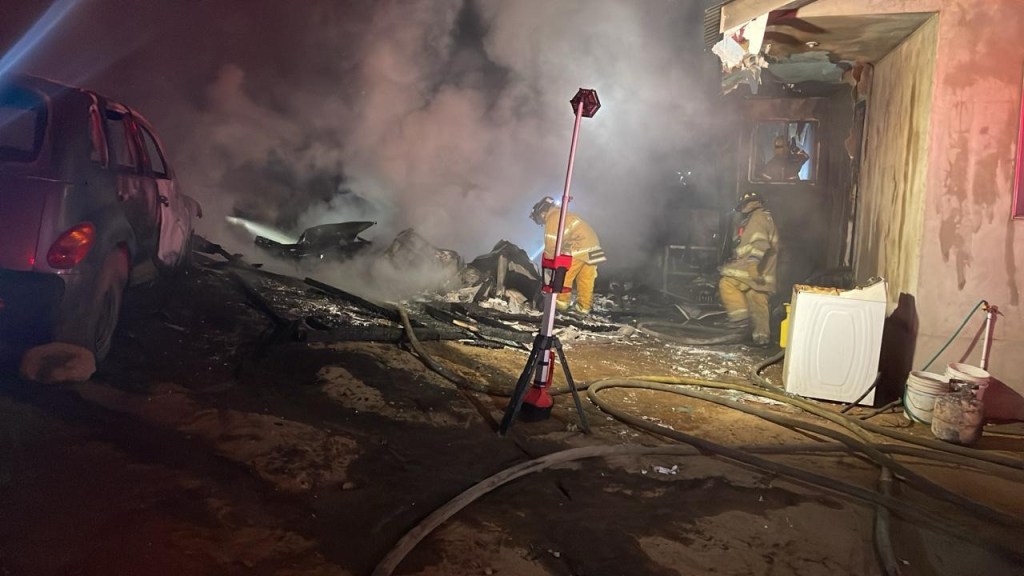 📍La Coordinación de Bomberos y Protección Civil de Tecate reporta incendio de casa y vehículo en la colonia Nido de Las Águilas.