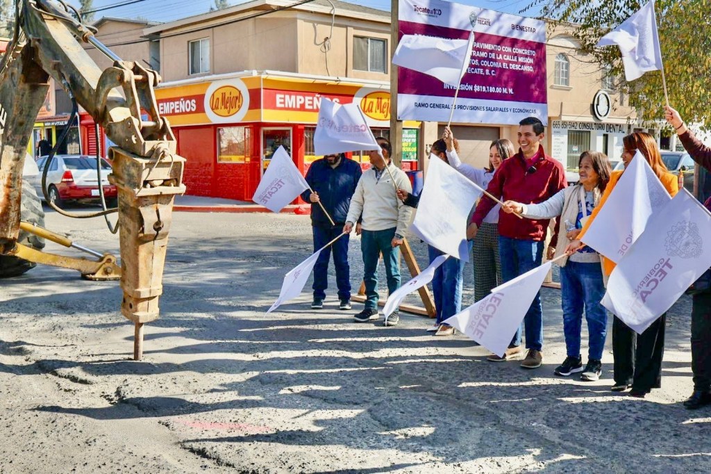 Trabajando para mejorar la movilidad en las calles del municipio, el Alcalde de Tecate Román Cota Muñoz, dio arranque esta tarde a los trabajos de rehabilitación de pavimento de la calle Misión de Todos los Santos, en la colonia El Descanso, compromiso con la comunidad.
