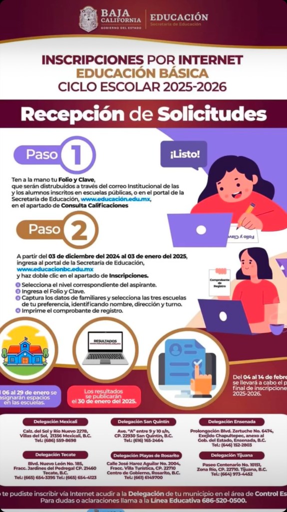 5 de diciembre de 2024 Benjaminpenamx TECATE || YA HAY OPCIÓN DE INSCRIBIR POR INTERNET A ALUMNOS DE EDUCACIÓN BÁSICA PARA EL CICLO ESCOLAR 2025-2026 Comparte esto: Compartir en X (Se abre en una ventana nueva) X Comparte en Facebook (Se abre en una ventana nueva) Facebook Me gusta Cargando...