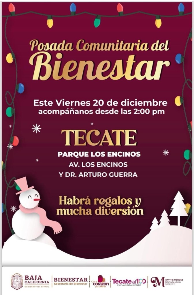 17 de diciembre de 2024 Benjaminpenamx CONVOCAN A POSADA COMUNITARIA 🗓️VIERNES 20 DE DICIEMBRE 2024 ⏰14:00 HORAS 📍PARQUE ENCINOS Comparte esto: Compartir en X (Se abre en una ventana nueva) X Comparte en Facebook (Se abre en una ventana nueva) Facebook Me gusta Cargando...