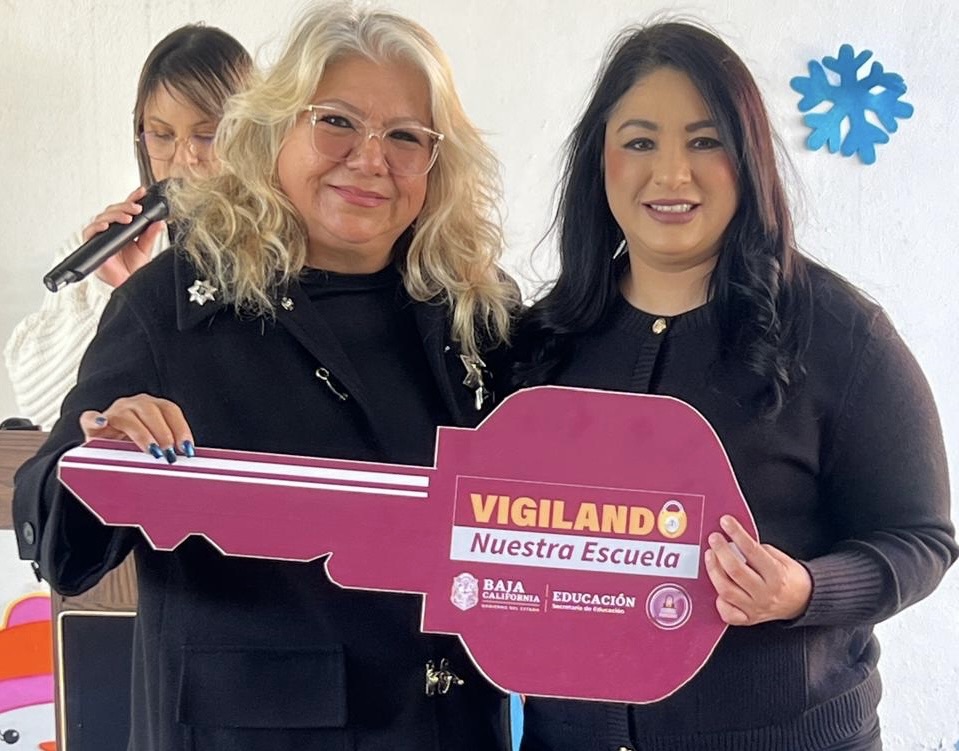 A nombre del presidente municipal Román Cota Muñoz, la Directora de Seguridad Ciudadana y Tránsito Municipal de Tecate, Marina Calderón Guillén, recibió de autoridades educativas del Gobierno del Estado de Baja California, las llaves de los planteles escolares.