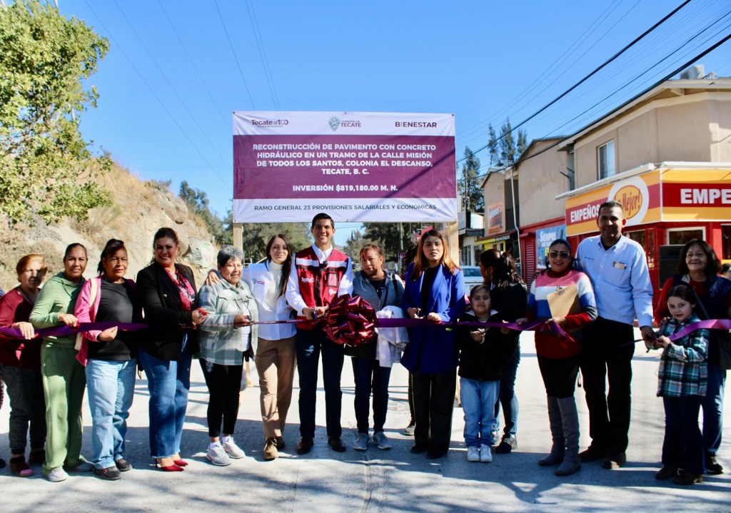 Tecate, Baja California, a 18 de diciembre de 2024 – El presidente municipal de Tecate, Román Cota Muñoz, encabezó la inauguración de la obra de reconstrucción de pavimento con concreto hidráulico en un tramo de la calle Misión de Todos los Santos, ubicada entre la calle Misión de Loreto y la calle Misión de San Diego, en la colonia El Descanso.