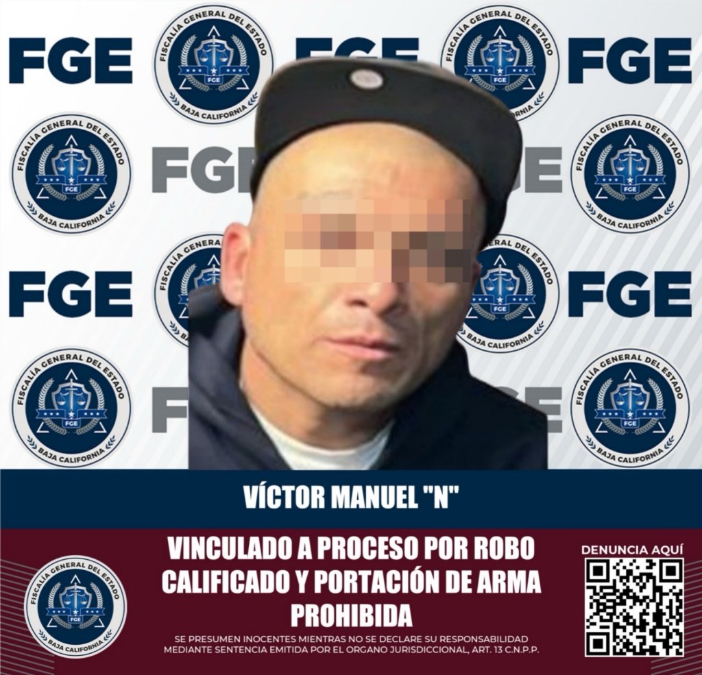 La Fiscalía Regional de Tecate, a través de la Unidad de Investigación contra Robos, informa que se llevó a cabo la audiencia de vinculación a proceso en contra de Víctor Manuel “N”, alias “El Visitas”, por el delito de robo calificado cometido de noche a lugar cerrado.
