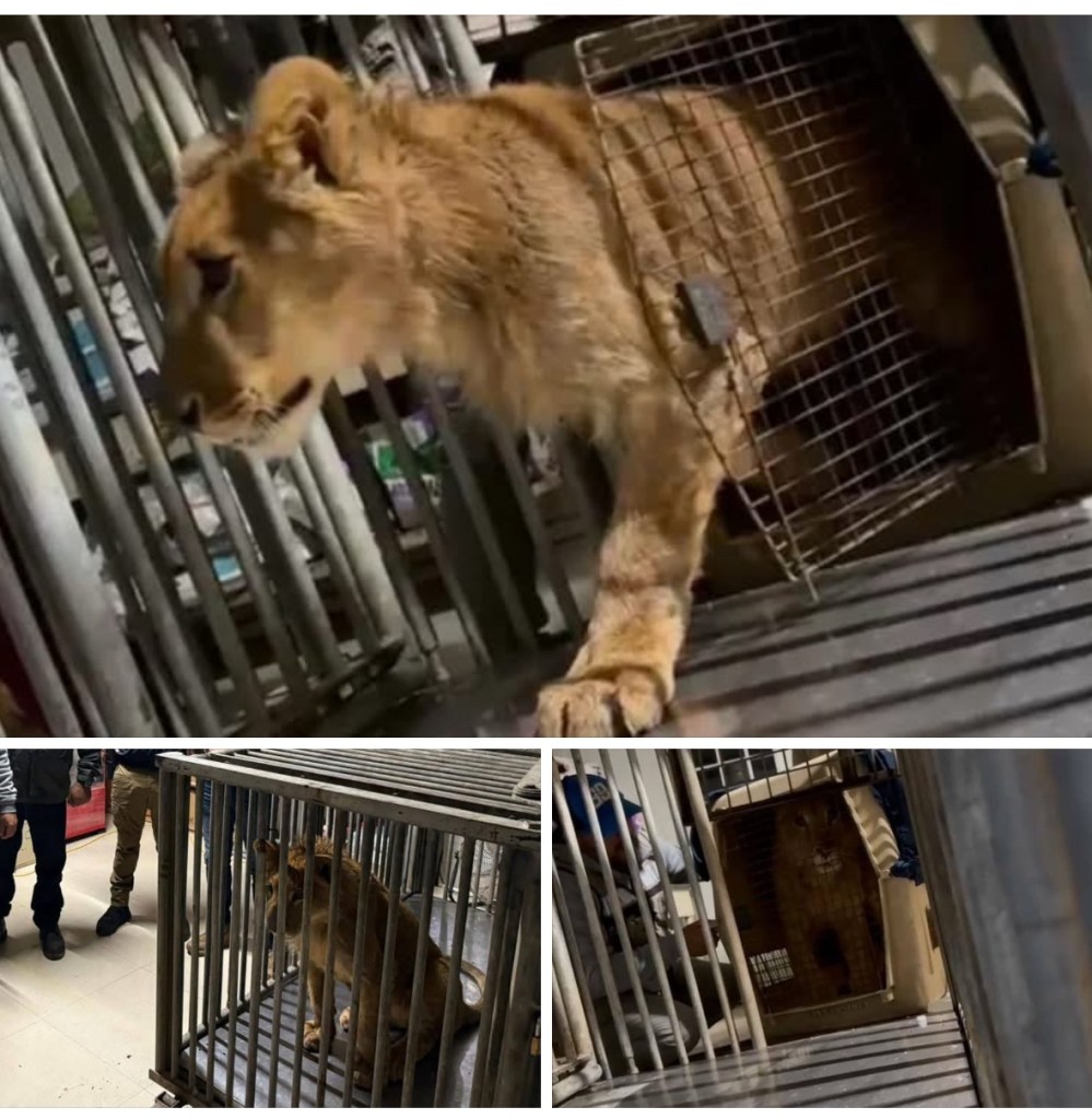 Fue así como se localizó sobre la banqueta dicha jaula transportadora que al ser inspeccionada por los agentes de la Secretaría de Seguridad Ciudadana de Baja California (SSCBC), confirmaron que dentro había un león africano de 5 meses de edad, aproximadamente.