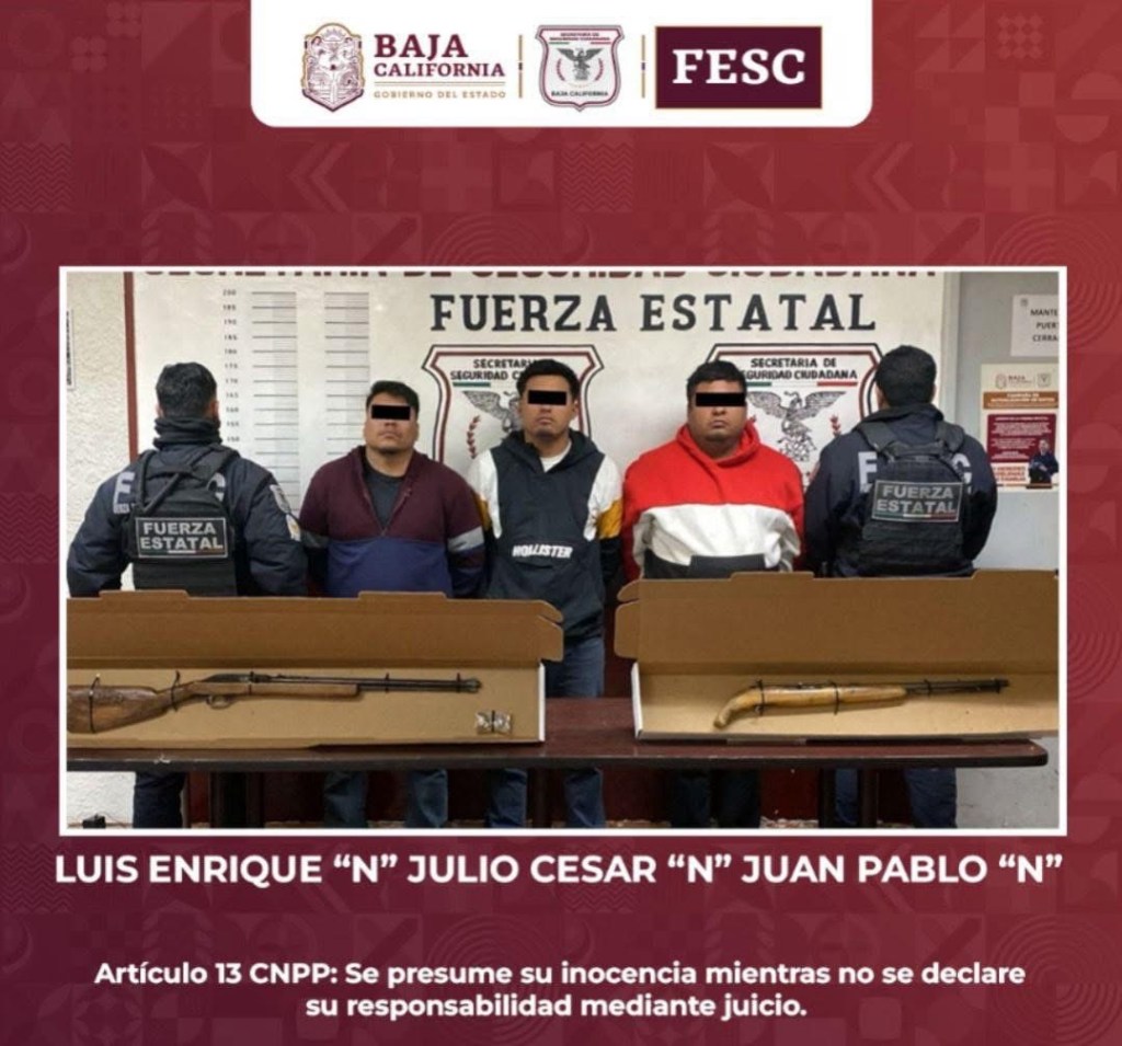 Como parte de las labores de prevención y vigilancia mediante operativos desplegados en el municipio de Tecate, agentes de la Fuerza Estatal de Seguridad Ciudadana (FESC) aseguraron a cuatro hombres, así como más de 900 litros de hidrocarburos (gasolina) y armas de fuego en los operativos se sumó la Secretaría de la Defensa Nacional (DEFENSA) y Guardia Nacional (GN).