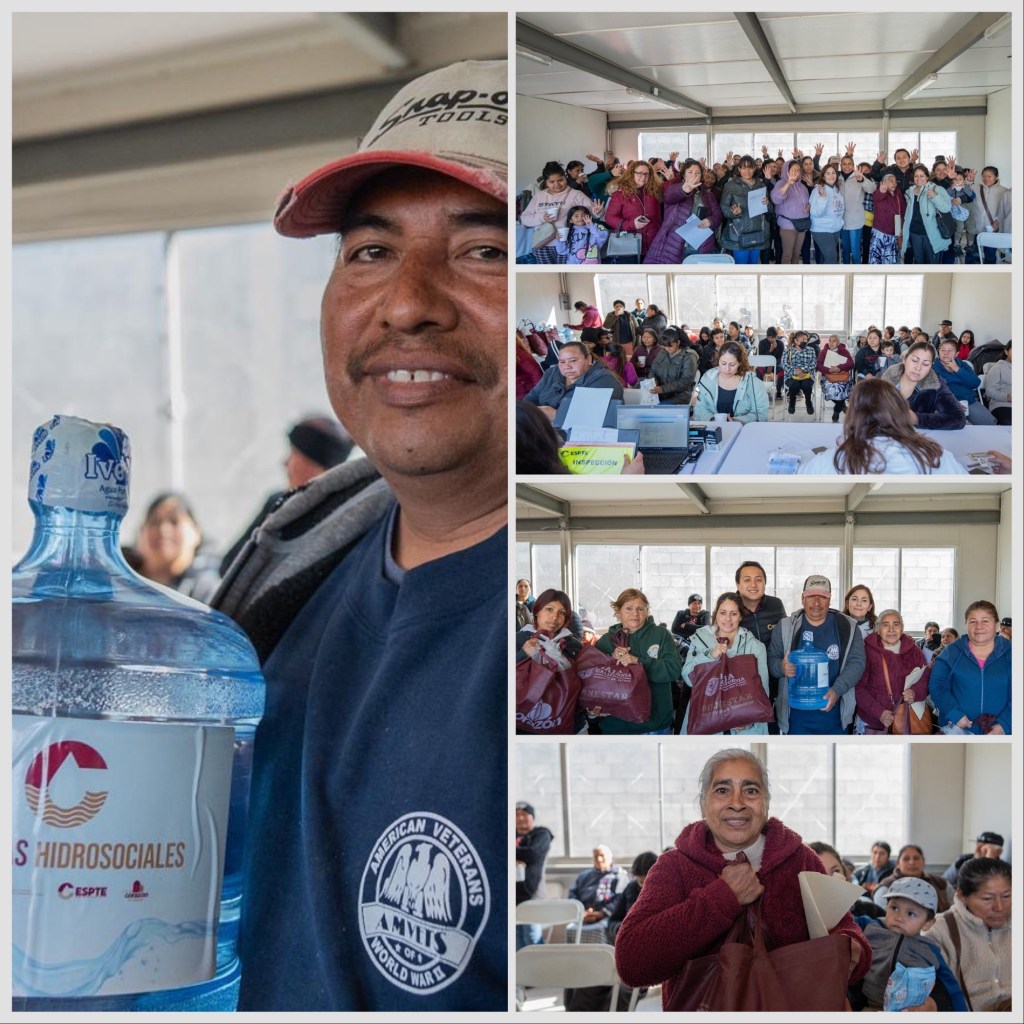 Además, los residentes tuvieron la oportunidad de solicitar tomas de agua potable o alcantarillado sanitario y recibieron agua purificada en garrafones de 11 litros, los cuales fueron distribuidos gratuitamente entre los asistentes.