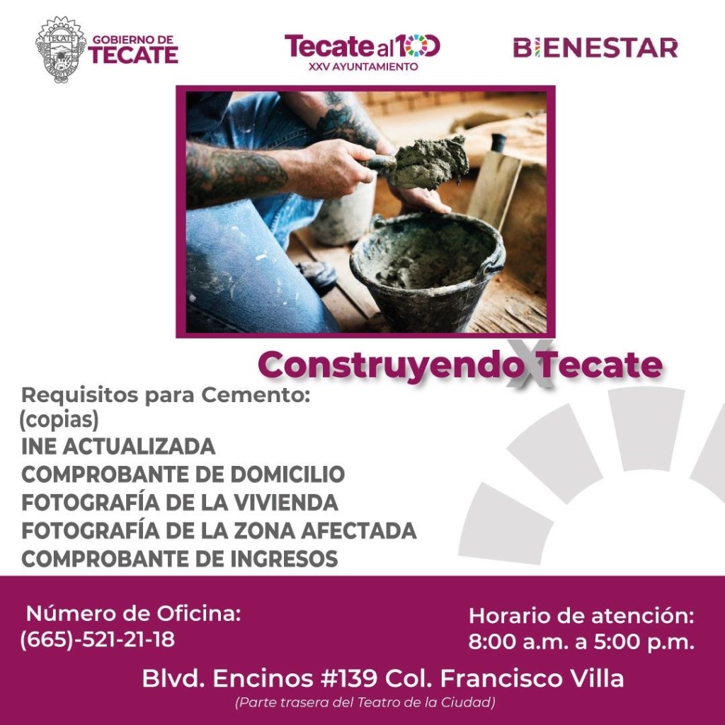Tecate, Baja California a 19 de de febrero.- En un esfuerzo por mejorar la calidad de vida de las familias tecatenses, el Gobierno Municipal, encabezado por el alcalde Román Cota Muñoz, ha puesto en marcha el programa «Construyendo x Tecate», que tiene como objetivo brindar apoyo a quienes requieren materiales para la mejora y rehabilitación de sus viviendas.