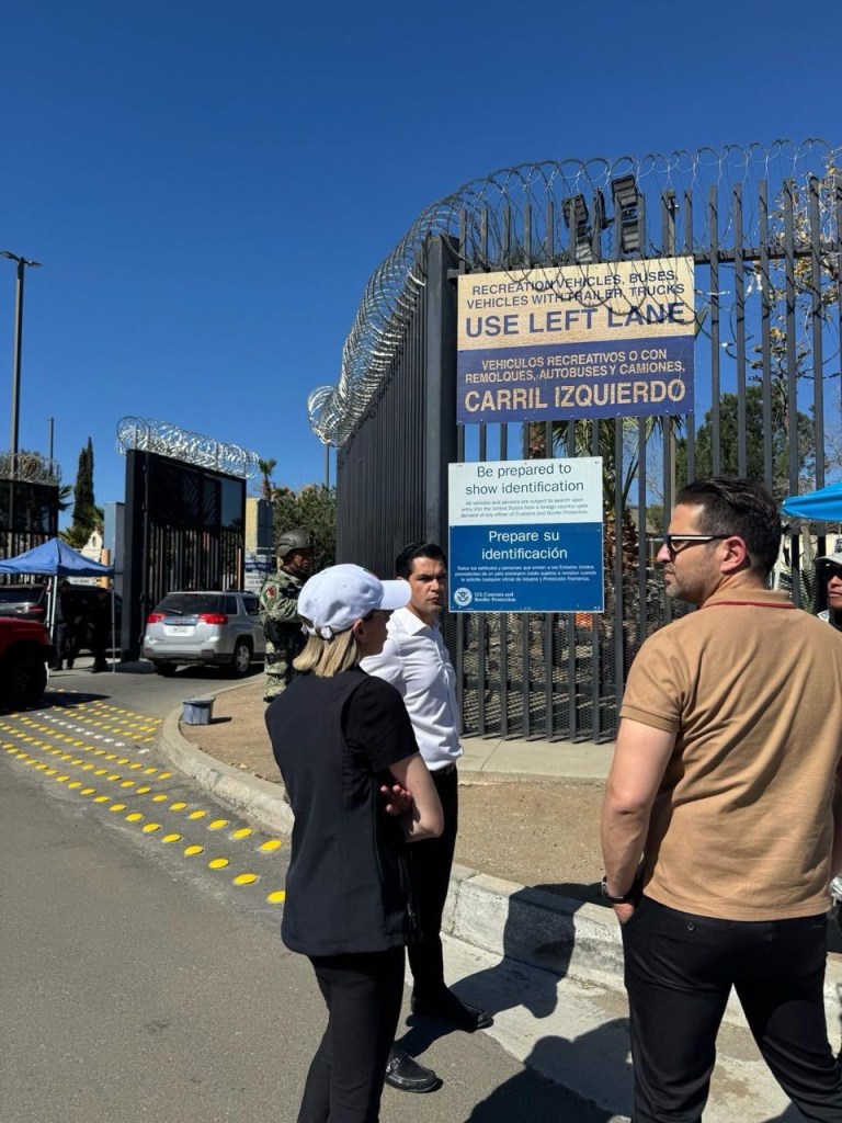 TECATE A 25 DE FEBRERO DEL 2025.- Con el objetivo de observar de cerca la problemática que enfrenta Tecate y buscar soluciones en conjunto con las autoridades correspondientes el diputado Beto Valle, la Directora de Asuntos Binacionales del Estado de Baja California, Rebeca Boutrous y Director de Relaciones Internacionales del Ayuntamiento de Tecate, Alex Camargo recorrieron la garita de Tecate para llevar a cabo las gestiones necesarias de ampliación del horario ante CBP.