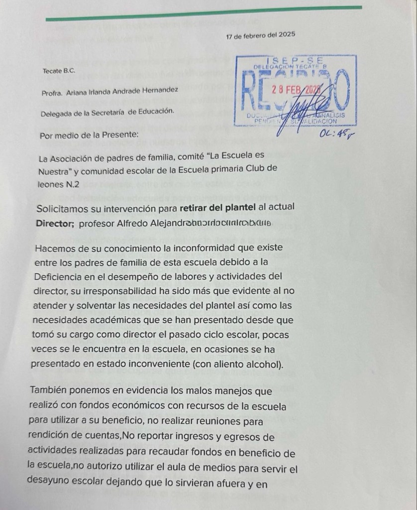 📌LOS PADRES DE FAMILIA PRESENTARON UN OFICIO A LA DELEGACIÓN DE EDUCACIÓN PÚBLICA DEL ESTADO EN TECATE.