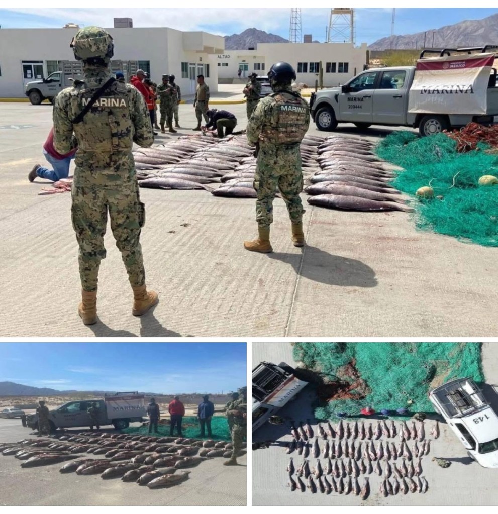📍EN UN OPERATIVO LA SEMAR, CONAPESCA Y LA PROFEPA, SE LOGRÓ EL ASEGURAMIENTO DE OCHO REDES TOTOABERAS Y MÚLTIPLES EJEMPLARES DE PEZ TOTOABA EN LAS COSTAS DE SAN FELIPE, BAJA CALIFORNIA.