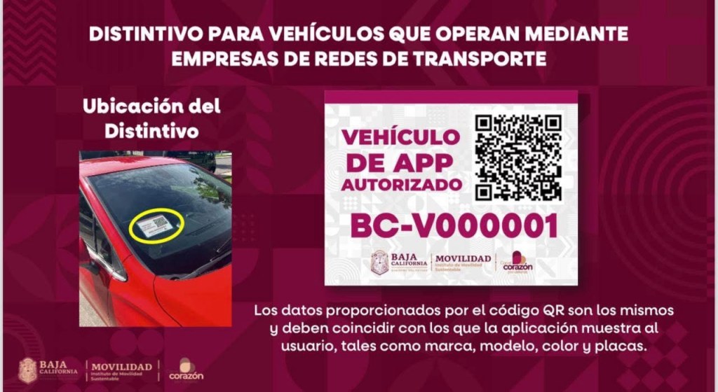 Tijuana, B.C- Con la finalidad de dotar a las y los usuarios de los servicios de transporte mediante plataformas digitales, de mayores medidas para su seguridad, el Instituto de Movilidad Sustentable de Baja California (IMOS) informó que ya ha sido publicada la reforma de Ley que establece que todos los vehículos que operan mediante empresas de redes de transporte (ERT) deben contar con un distintivo visible mientras estén prestando sus servicios.