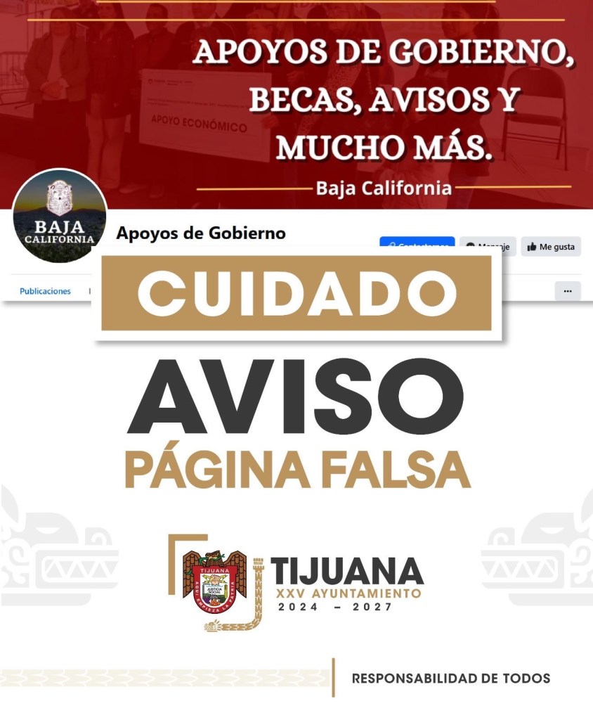 Tijuana, Baja California, a 26 de marzo de 2025.* El XXV Ayuntamiento de Tijuana informa a la ciudadanía sobre la existencia de una página de Facebook falsa a través de la cual se solicita dinero a cambio de trámites para acceder a los apoyos de Fondos Tijuana, gestionados por la Secretaría de Desarrollo Económico de Tijuana.