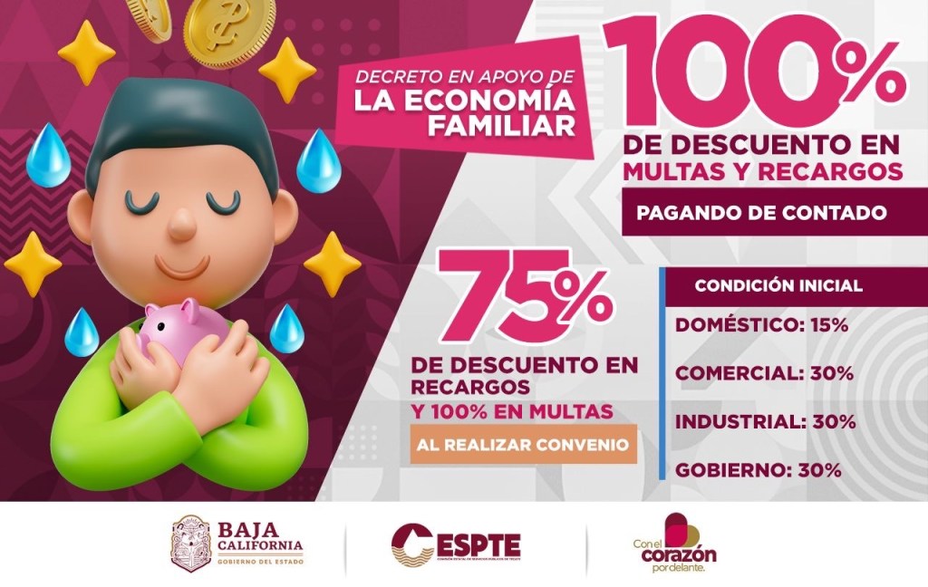 TECATE.- La Comisión Estatal de Servicios Públicos de Tecate (CESPTE) informa a la comunidad sobre la entrada en vigor del Decreto de Condonación de Multas y Recargos por consumo de agua potable, el cual beneficia tanto a usuarios domésticos como comerciales. Este apoyo aplica para los adeudos generados con anterioridad al 28 de marzo de 2025.