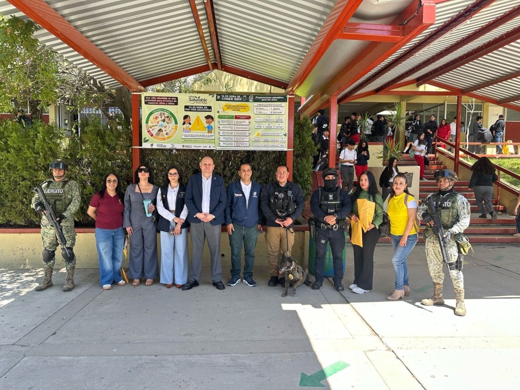 Durante la visita, el equipo de la Fiscalía dio a conocer los distintos servicios de atención, seguimiento y orientación disponibles para la comunidad. De igual manera, se realizó un recorrido en las aulas en compañía del binomio canino K9 “Maya”, cuya presencia permitió generar un vínculo cercano con el alumnado, reforzando la confianza hacia las autoridades, así como hacer una revisión preventiva para combatir las adicciones en jóvenes.