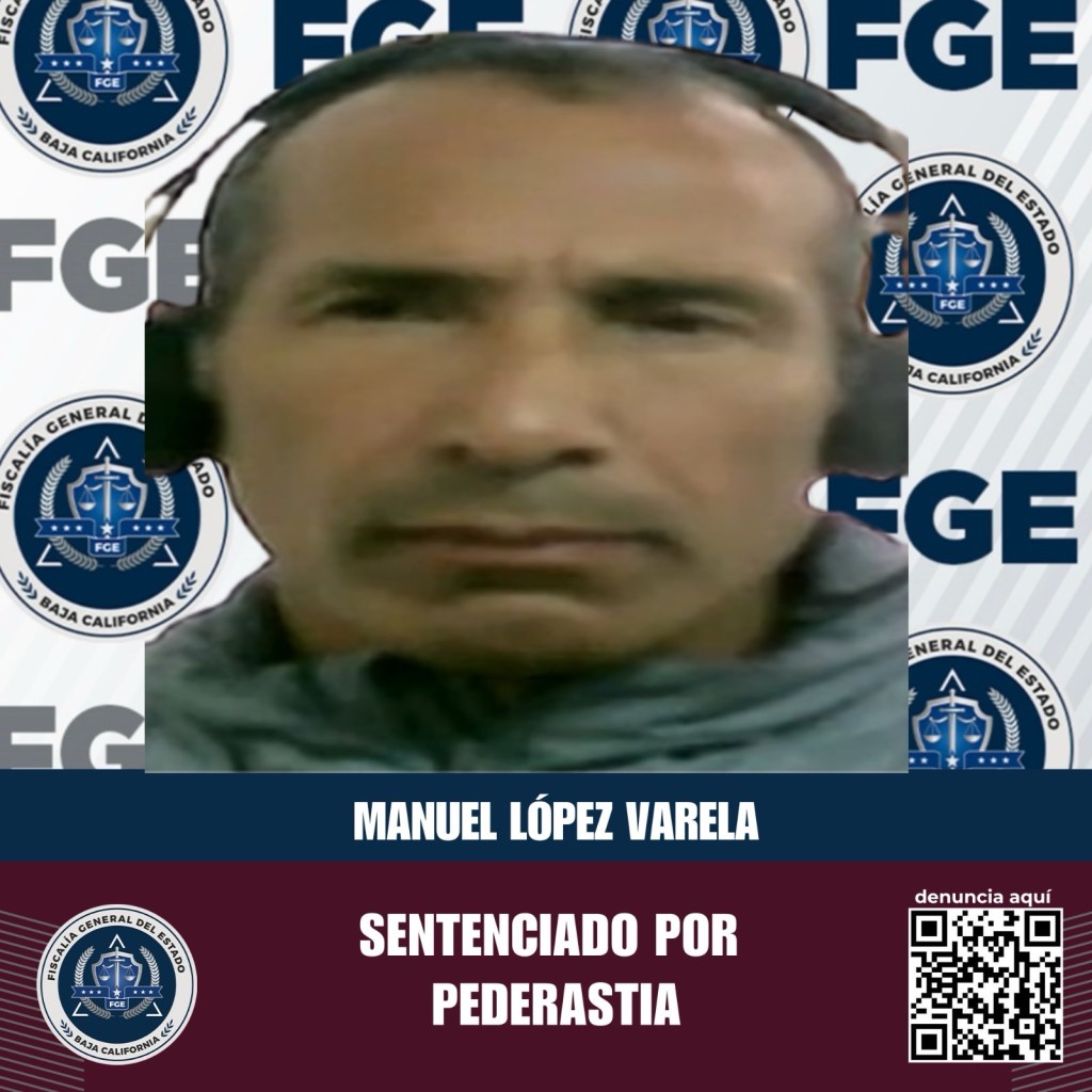 PLAYAS DE ROSARITO, BAJA CALIFORNIA A 19 DE ABIRL DE 2025.- La Fiscalía General del Estado (FGE), bajo las indicaciones de la titular, Dra. Ma. Elena Andrade Ramírez, y con la ardua labor de investigación de la Fiscalía Especializada en Delitos Contra la Mujer por Razón de Género, logró obtener una sentencia condenatoria en contra de Manuel López Varela por el delito de pederastia, en contra de una menor de edad.