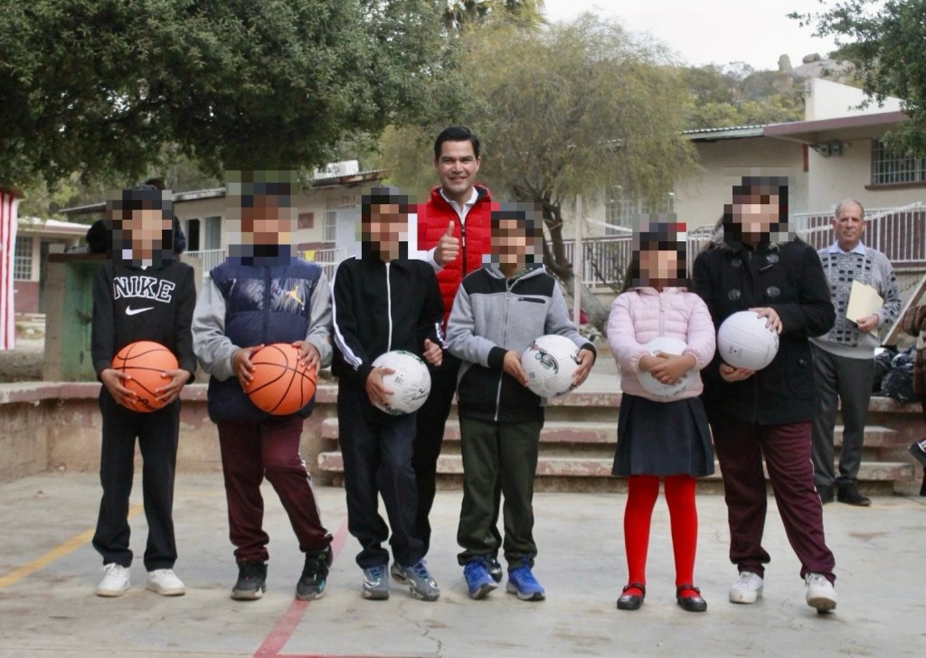 TECATE A 28 DE ABRIL DEL 2025.- El diputado Beto Valle, presidente de la Comisión de Deporte y Cultura, encabezó este lunes cívico en la primaria Cuitláhuac y el jardín de niños Jaime Torres Bodet, en el Nido de las Águilas, donde hizo entrega de material deportivo para fomentar entre los estudiantes la práctica de actividades físicas en combinación con sus estudios.