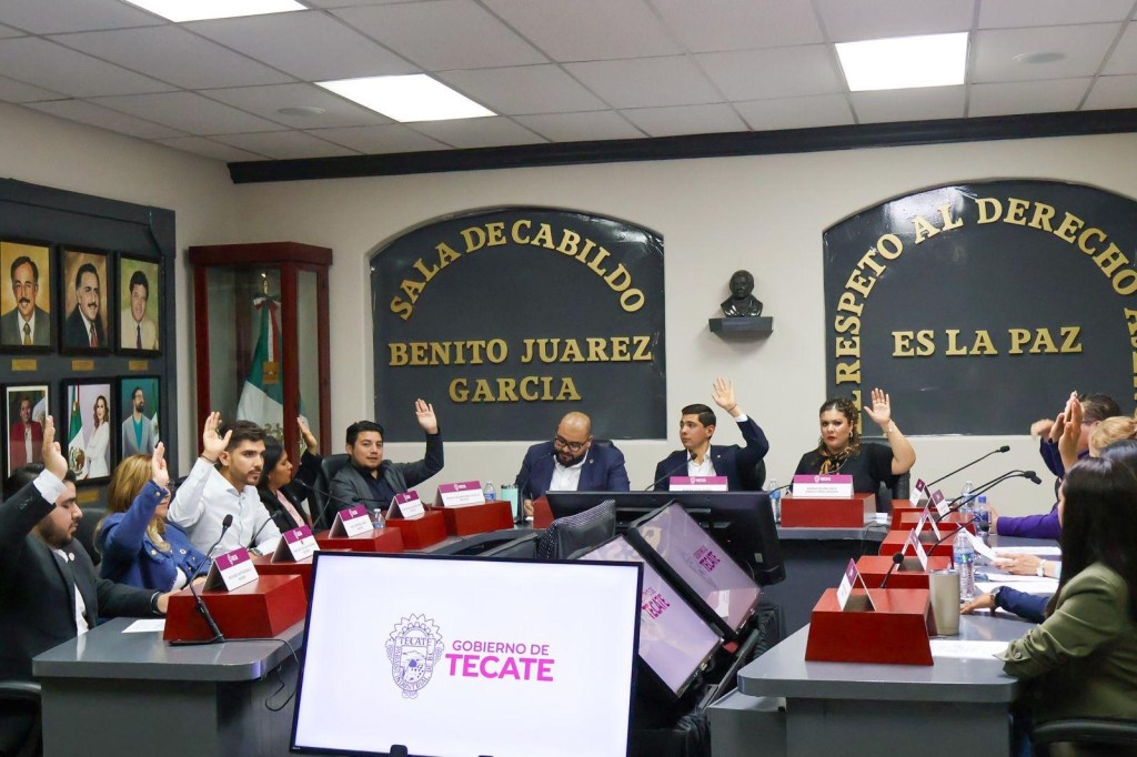 Tecate, Baja California a 07 de mayo de 2025.- En sesión ordinaria de Cabildo número 28, celebrada este miércoles en la Sala Benito Juárez García, el H. XXV Ayuntamiento de Tecate aprobó importantes resoluciones que fortalecen el marco normativo del municipio y promueven una administración pública más eficiente, moderna e incluyente.