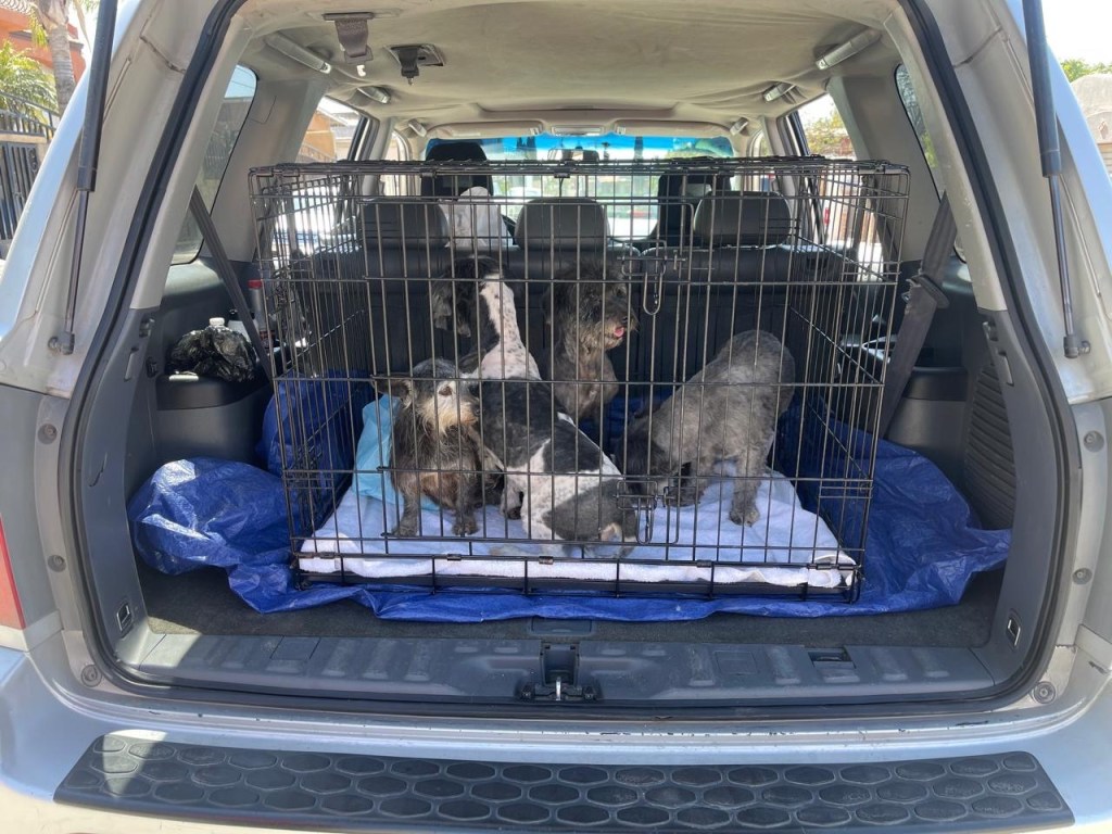 Durante la diligencia, la Unidad de Tramitación Masiva de Causas de la Fiscalía Regional de Tecate, localizó en el interior del predio a cuatro caninos, dos machos y dos hembras de raza French Poodle, de tamaño mediano y color oscuro. Los animales presentaban condiciones de descuido extremo: sucios, con el pelaje largo, enredado, y sin acceso visible a agua o alimento.