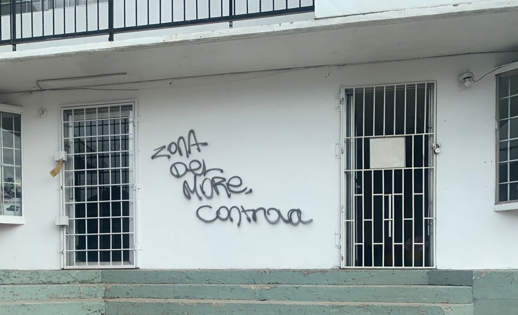 📍DIVERSOS LOCALES COMERCIALES DEL PUEBLO MÁGICO DESDE DÍAS ANTERIORES AMANECIERON CON PINTAS EN SUS FACHADAS, DONDE CON AEROSOL NEGRO SE LEE “ZONA DEL MORE, CONTROLA”.