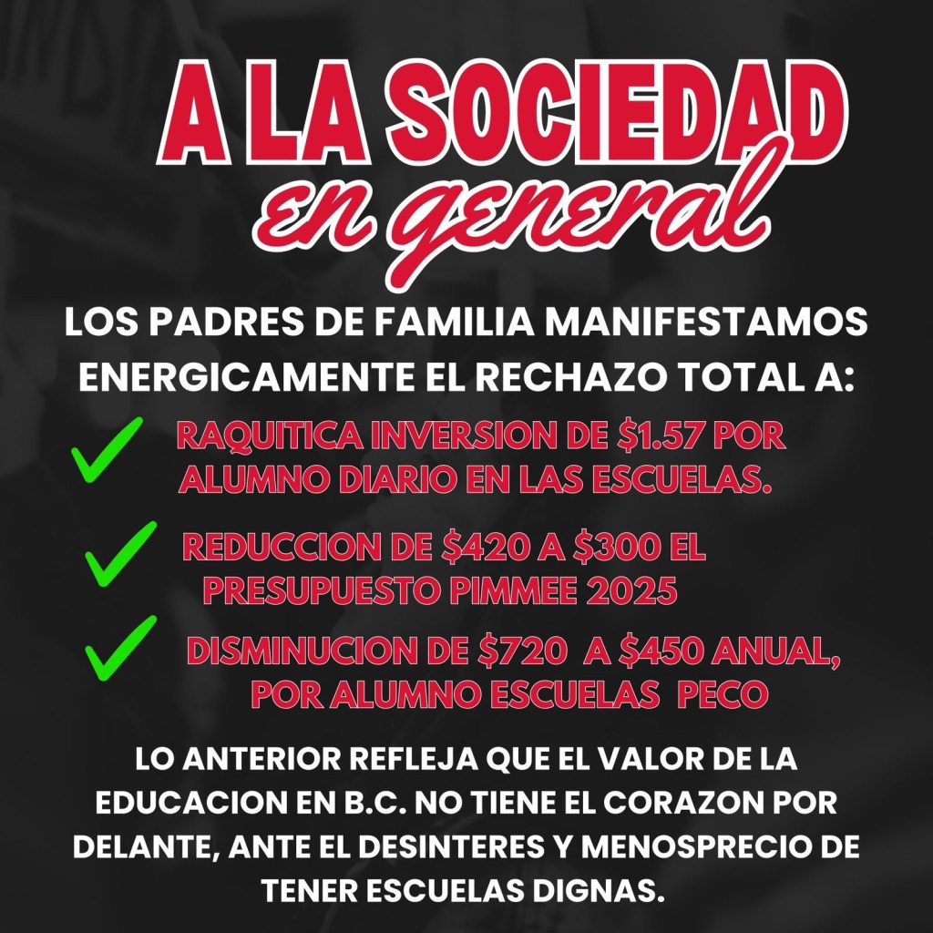 📌PADRES DE FAMILIA Y PERSONAL EDUCATIVO HAN COMENZADO A MANIFESTAR SU INCONFORMIDAD ANTE EL RECORTE AL PRESUPUESTO DEL PROGRAMA DE INSUMOS Y MANTENIMIENTO PARA EL MEJORAMIENTO DEL ENTORNO EDUCATIVO (PIMMEE), EL CUAL AFECTA DIRECTAMENTE A LAS ESCUELAS PÚBLICAS DE NIVEL BÁSICO EN BAJA CALIFORNIA.