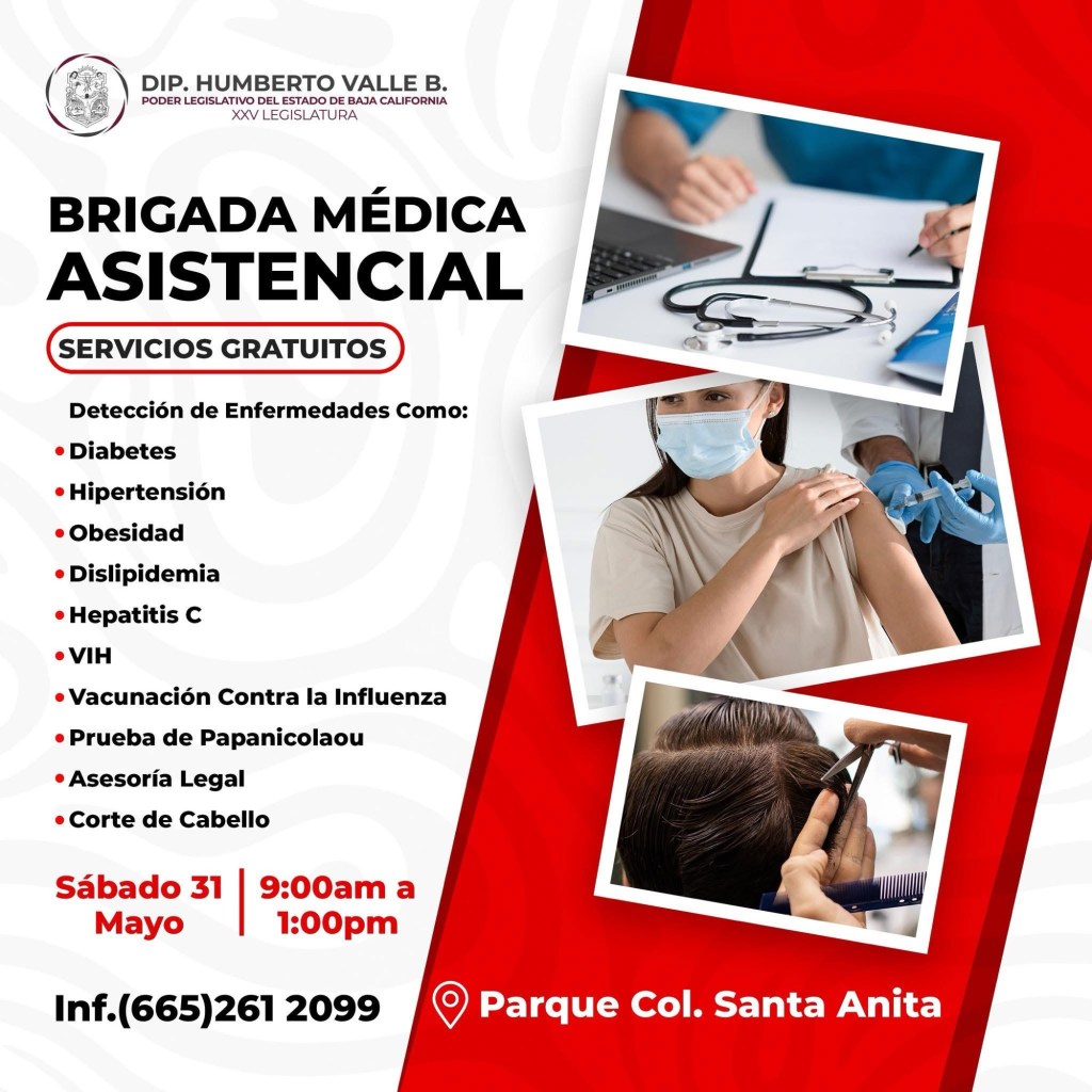 🔴Convocan a la ciudadanía a participar en la brigada médica asistencial gratuita, que se llevará a cabo el próximo sábado 31 de mayo, de 9:00 a.m. a 1:00 p.m., en el parque de la colonia Santa Anita.