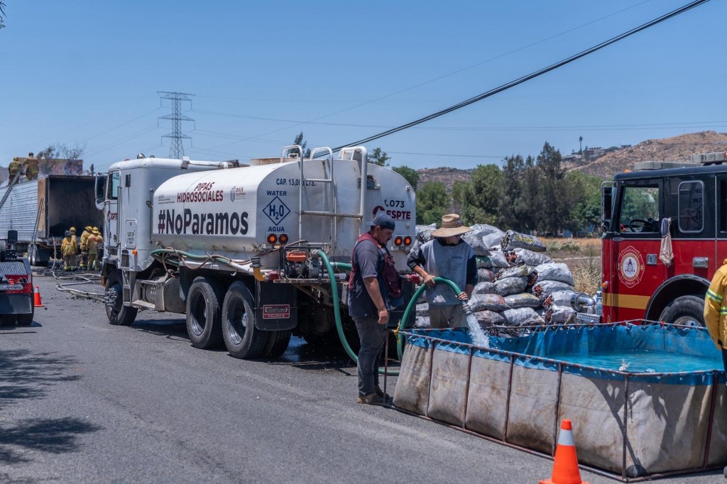 El incidente fue reportado el jueves 6 de junio por el conductor de un tráiler cargado con bolsas de carbón de 20 kg, quien alertó sobre la presencia de humo saliendo de la caja del vehículo. Ante la posibilidad de que el cargamento se incendiara, unidades de emergencia se movilizaron rápidamente al lugar, incluyendo Bomberos de Tecate, Caminos y Puentes Federales (CAPUFE), el Departamento de Limpia, CRREAD y el organismo operador de agua, quien aportó una pipa de agua para colaborar en la contención preventiva.