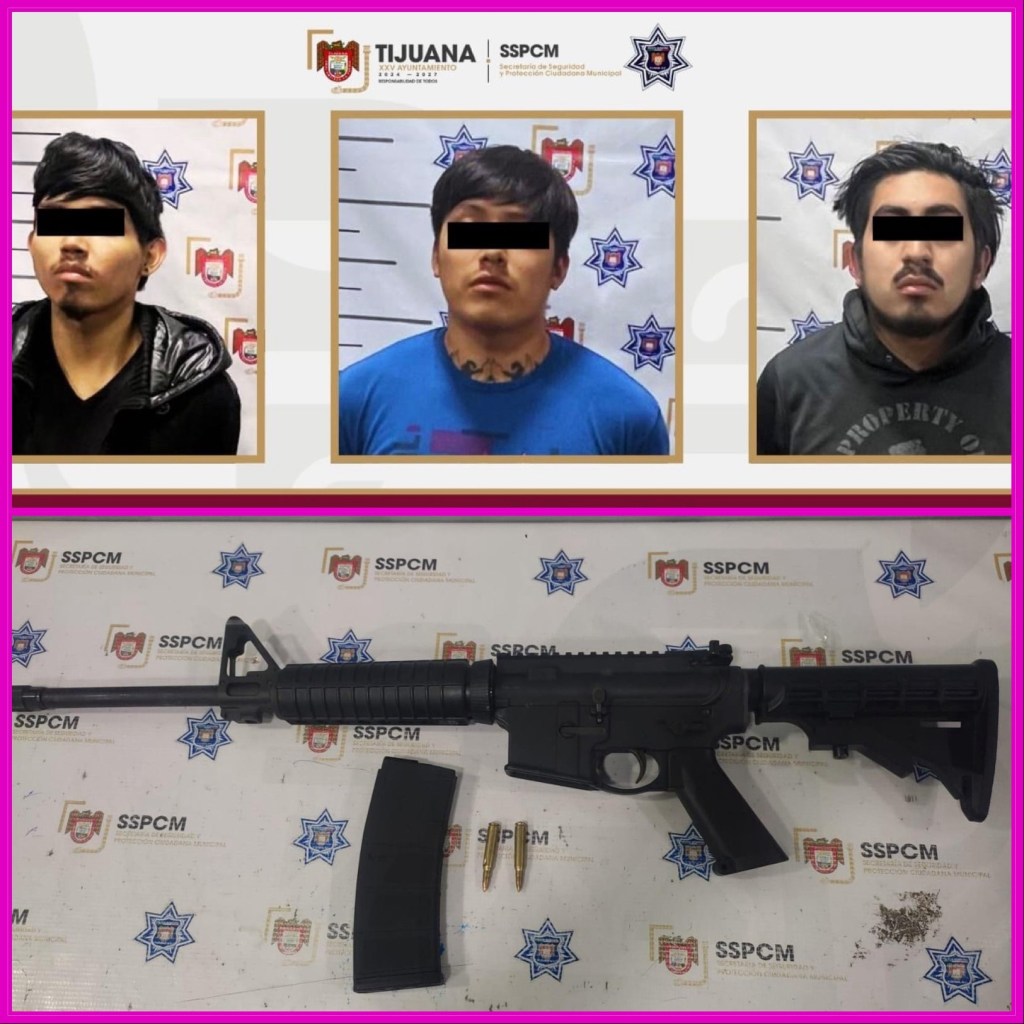 Tijuana, B.C., a 14 de julio de 2025. Durante un recorrido de vigilancia en la colonia Loma Bonita, elementos de la Policía Municipal de Tijuana, interceptaron un camión de transporte de personal, color blanco con azul, que circulaba a exceso de velocidad y donde al interior se encontró un arma larga, informó la Secretaría de Seguridad y Protección Ciudadana Municipal.