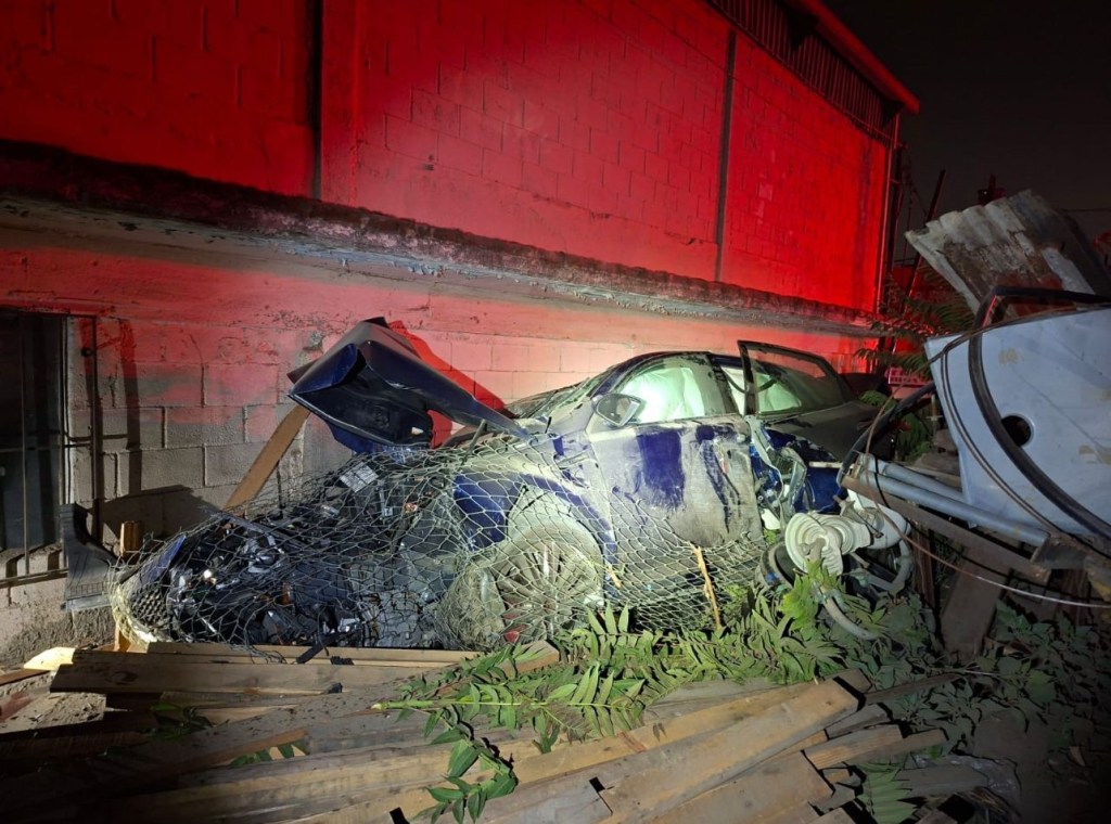 En el lugar se localizó un vehículo marca KIA, línea Optima, modelo 2017, color azul, con placas del estado de California, el cual derribó un poste de la Comisión Federal de Electricidad, dejando la estructura partida a la mitad y obstruyendo la vialidad. Asimismo, el automóvil colisionó con un cerco perimetral, ingresando a un predio de un establecimiento comercial.