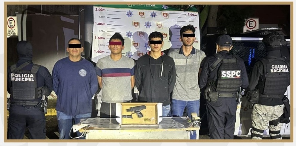 Tijuana, Baja California a 4 de agosto de 2025.- En una exitosa coordinación entre la Secretaría de Seguridad y Protección Ciudadana (SSPCM), la Secretaría de Seguridad y Protección Ciudadana Federal (SSPCF) y la Guardia Nacional, se logró la detención de cuatro individuos por la portación ilegal de arma de fuego, de los cuales se presume que, al menos, uno de ellos está relacionado con el homicidio del propietario de Saldos Max.