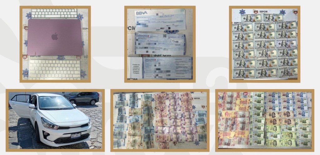 Los detenidos fueron identificados como Francisco “N”, Víctor Hugo “N”, José Luis “N” e Ismael “N”. Durante su detención, Francisco y Víctor Hugo portaban el equipo de cómputo robado, herramientas, la chequera y el dinero en efectivo, mientras que José Luis e Ismael fueron tenían en su poder el dinero en moneda americana.