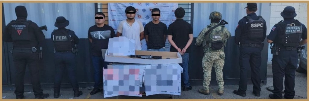 Tijuana, Baja California a 2 de septiembre de 2025. La Secretaría de Seguridad y Protección Ciudadana Municipal (SSPCM), en colaboración con elementos de la Secretaría de la Defensa Nacional, la Secretaría de Seguridad y Protección Ciudadana Federal (SSPCF) y de la Fuerza Estatal de Seguridad Ciudadana (FESC), llevó a cabo la detención de cuatro individuos implicados en la portación de un arma tipo fusil calibre .223, así como en la posesión de tres cartulinas que contenían amenazas dirigidas a un grupo delictivo.