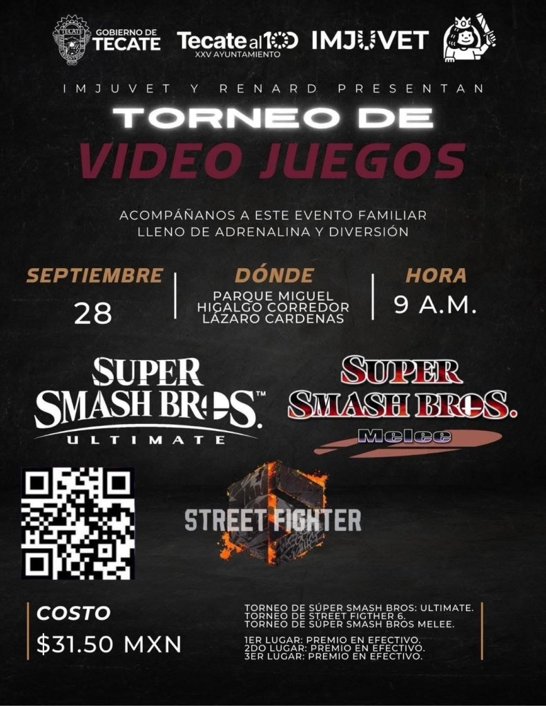 📍 SERÁ EL 28 DE SEPTIEMBRE DESDE LAS 9:00 A.M. Y SERÁN LOS JUEGOS DE SUPER SMASH BROS, ULTIMATE, MELEE Y STREET FIGHTER 6