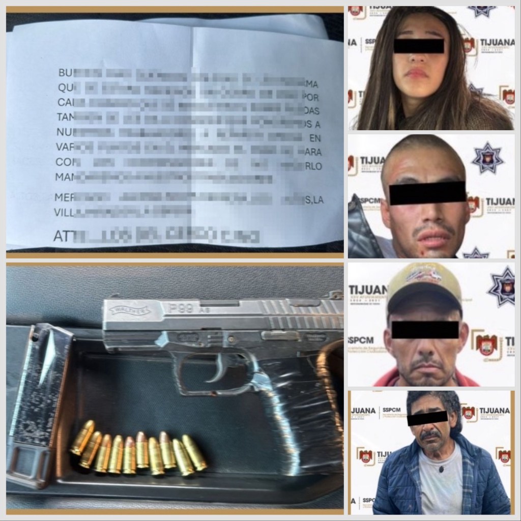 Tijuana, Baja California a 17 de septiembre de 2025. La Secretaría de Seguridad y Protección Ciudadana Municipal (SSPCM) llevó a cabo la detención de cuatro individuos señalados como presuntos responsables del delito de amenazas e intento de extorsión, gracias a una denuncia oportuna presentada por las víctimas a través de la línea de emergencia 9-1-1.