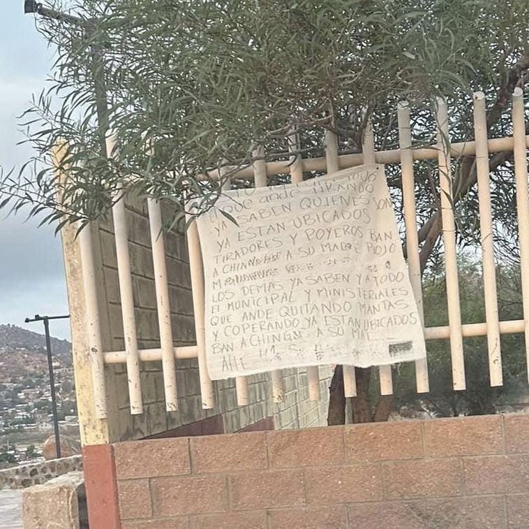 📌SEGÚN VERSIONES EXTRAOFICIALES, EL MENSAJE ESCRITO EN UNA MANTA BLANCA CONTENÍA AMENAZAS DIRECTAS CONTRA QUIENES REALIZAN ACTIVIDADES ILEGALES EN LA CIUDAD, Y ADVERTÍAN A ELEMENTOS DE LA POLICÍA MUNICIPAL Y DE LA FISCALÍA GENERAL DEL ESTADO (FGE) QUE RETIRARAN LAS MANTAS O COLABORARAN CON ELLOS.